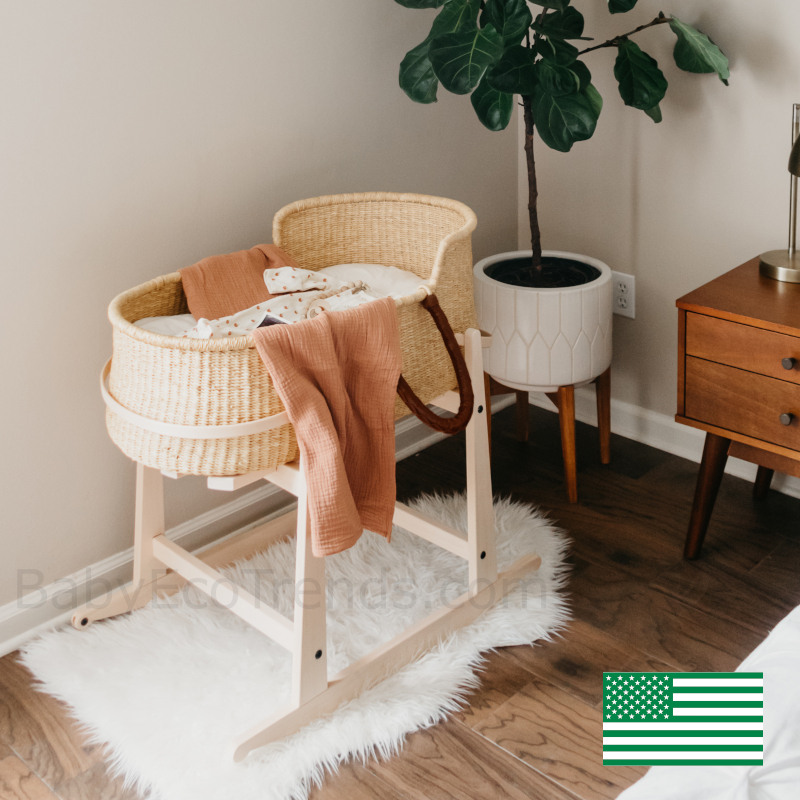 Our Addy & Sage Rocking Stand for Large Moses Baskets for Loungers (such as snuggle me & DockATot infant loungers) is a beautifully hand made solid wood stand that allows you to keep your newborn close at all times. For your little one's comfort and safety, we have added extra support under the bassinet to prevent any soft spots or gaps. Hand made in the USA. Basket is not included.