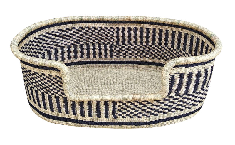 Our Maddox Pet Bed is the perfect natural sleep environment for cats or dogs. Available in four standard sizes but out weavers can make them in any size you need. Each one of a kind basket is hand woven in Ghana of natural elephant grass and ships directly from the weaver to you.