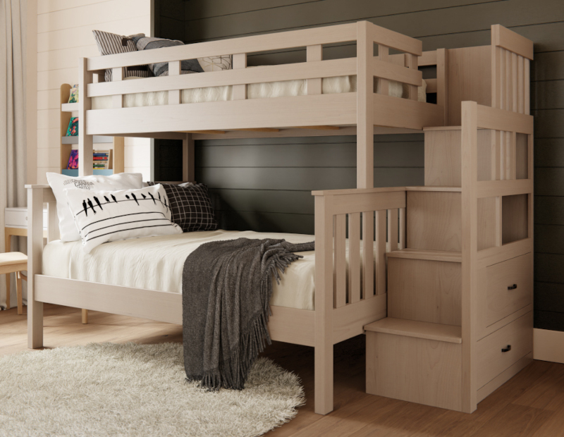 NewAmish Fairbanks Twin & Full Bunk Bed with Stairs & Drawers