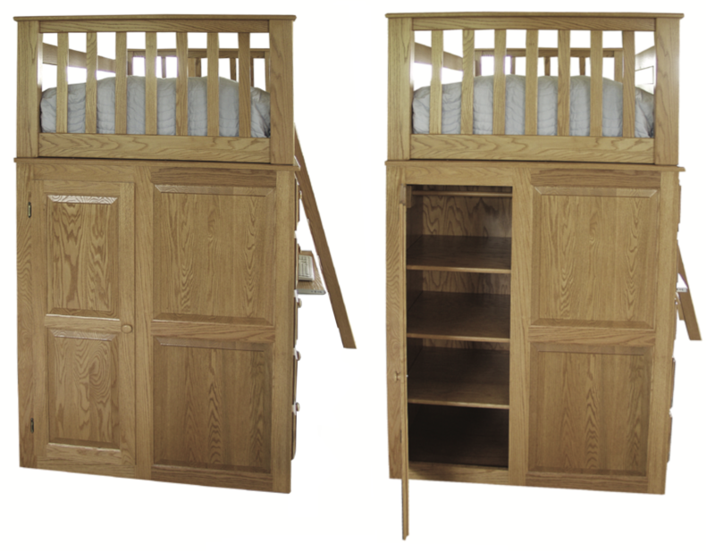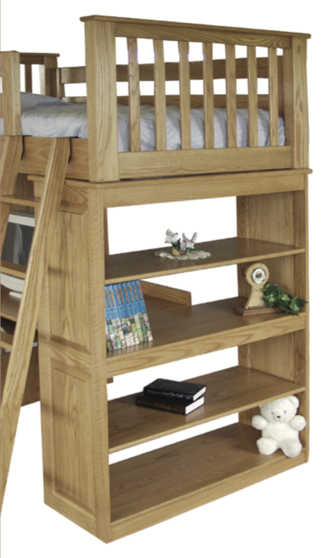 Our Amish Sidney Loft Bed, shown here in Red Oak with Natural stain, is beautifully handcrafted in the USA by Amish craftsmen and fits a standard size mattress. Our American made children's furniture is made entirely of solid wood harvested responsibly here in the USA. Our solid wood loft bed features standard safety guardrails on both sides of top bunk for ultimate security. Made in Ohio.